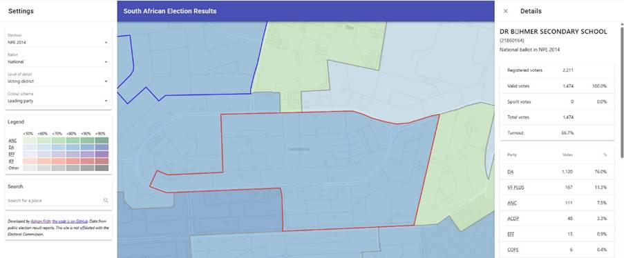 Let wel dat die grense van die Dr. Bohmer Sekondêre Skool-kiesersdistrik 'n klein bietjie verander het. Die dekade van studentifikasie het sy tol geëis op die sogenaamde blou voorstede. Die opkoms van die EFF in hierdie dele van Bloemfontein eggo die sukses wat dié party in studenteraadsverkiesings behaal. In 2020 het die EFF Student Command die ANC-gesinde studente-organisasie SASCO by Kovsies onttroon – en nog nie weer teruggekyk nie. Daar is 'n duidelike korrelasie tussen watter studente-organisasie die SR beheer en vir watter party studente dan in nasionale verkiesings stem.